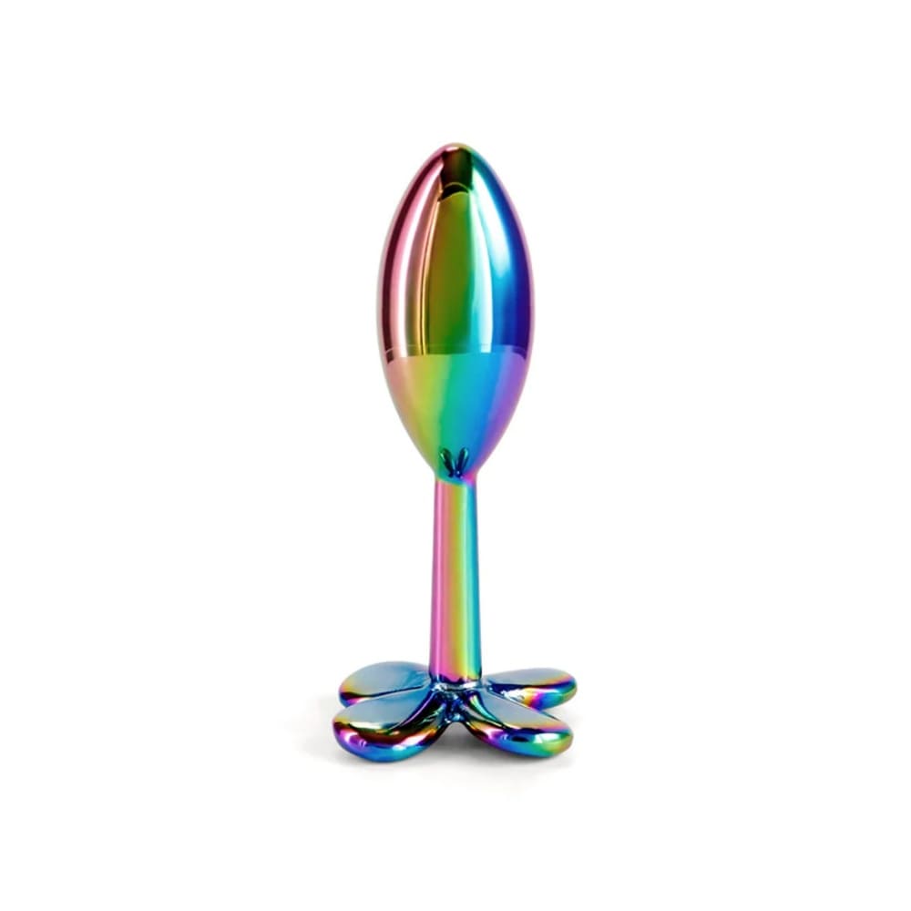 Игривата и полирана до блясък алуминиева форма със закачлив елемент представлява нежен конус, който разтяга и стимулира ануса, без да го претоварва. Красивата широка основа във формата на детелина предотвратява навлизането прекалено надълбоко осигурявайки безопасна игра и красива гледка на задната линия. Изработен от гладък, изключително издръжлив алуминий, този бът плъг е изключително лесен за хигиенизиране. Лесно се почиства преди и след игра, като се използва топла сапунена вода или спрей/пяна за почистване на секс играчки. Напълно безопасен за използване с всеки любим лубрикант, било то на водна, силиконова или хибридна основа. Благодарение на непорестата природа на алуминия, вероятно ще се нуждаете от значително по-малко лубрикант от обикновено. Също така е подходящ за температурни игри.