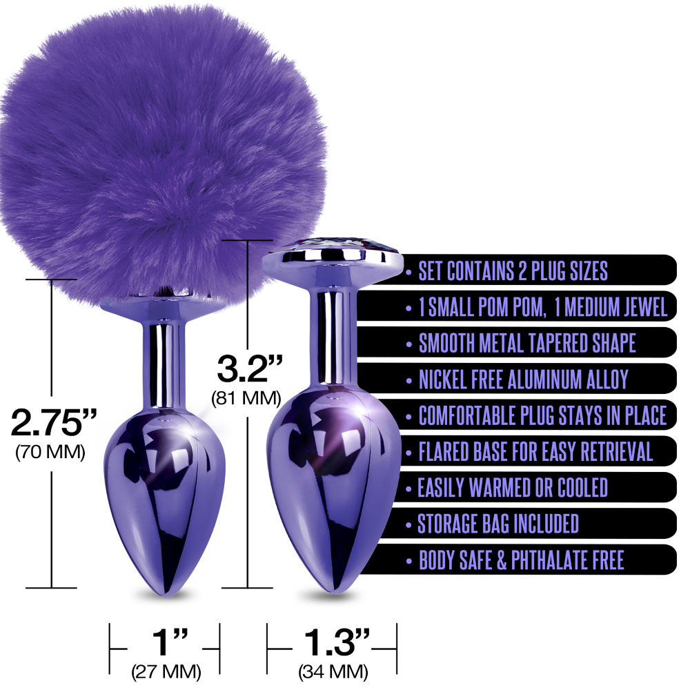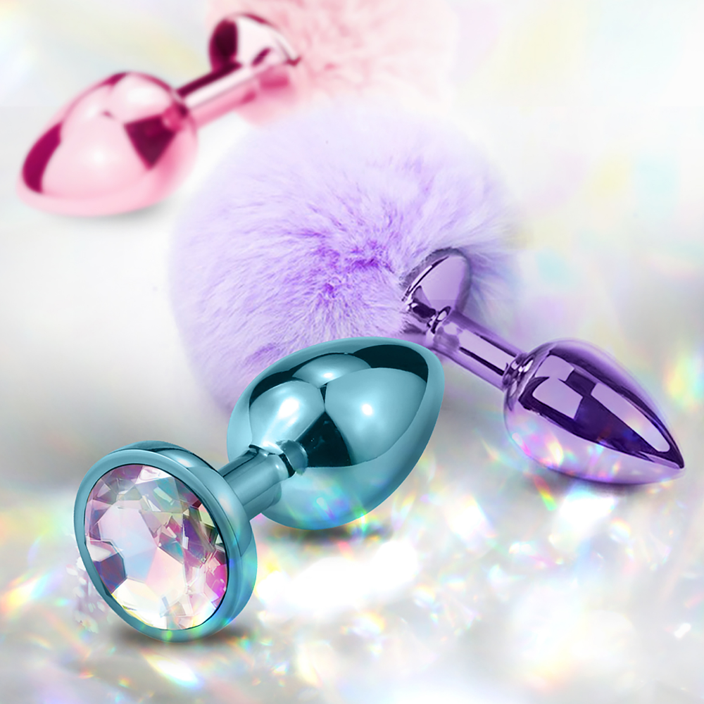 По-малкият от двата е украсен с пом пом, който нежно ще ви гали, докато е във вас, а по-големият размер е украсен с инкрустиран кристал, за да бъде гледката отзад напълно зашеметяваща.