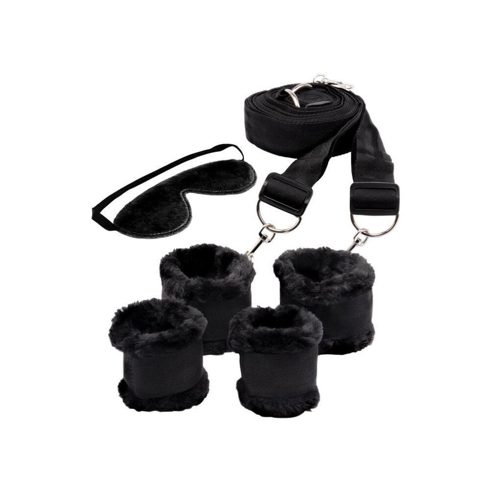 • Пълен BDSM комплект за фиксация: Четири подплатени белезници с регулируеми каишки за пълен контрол върху партньора.