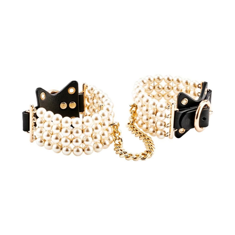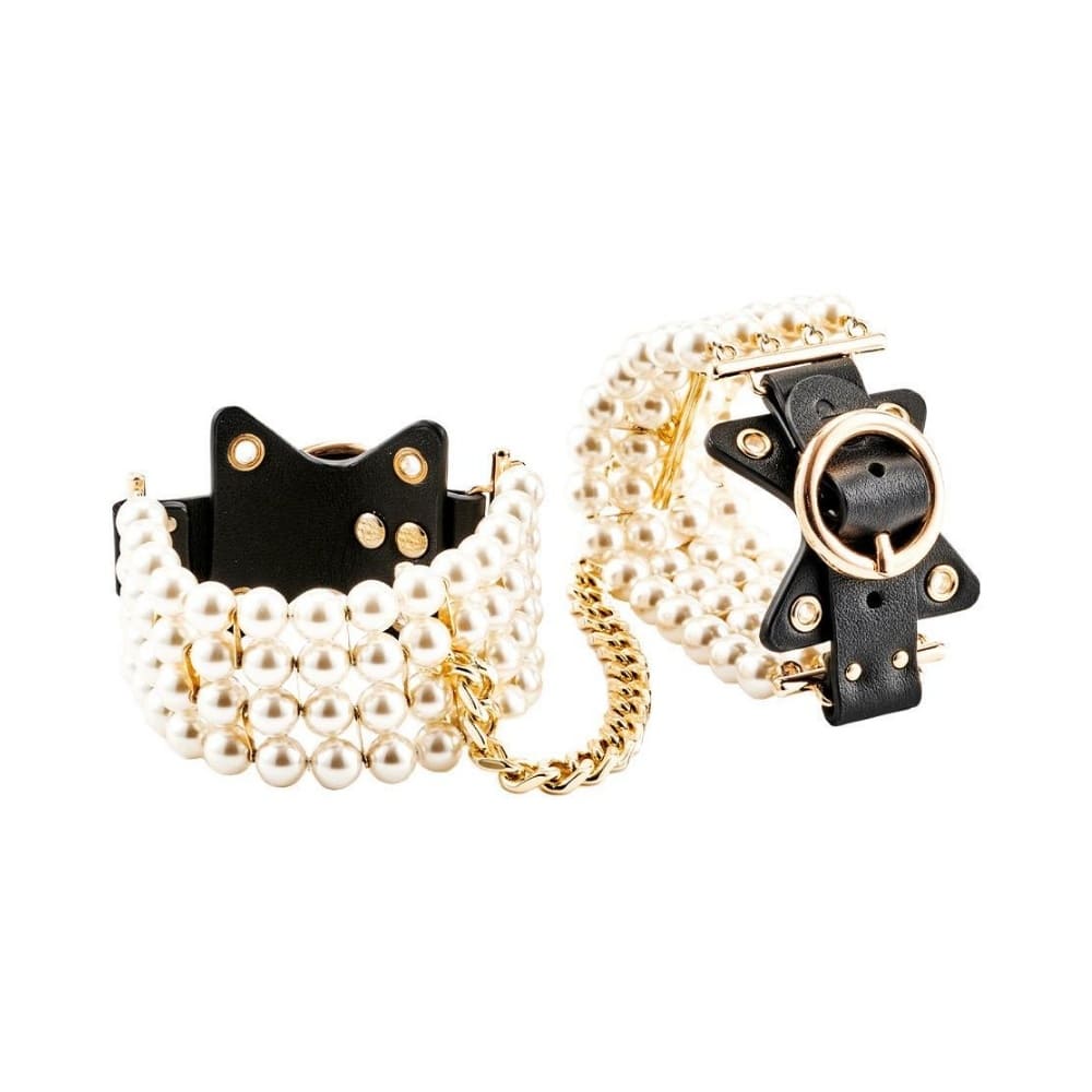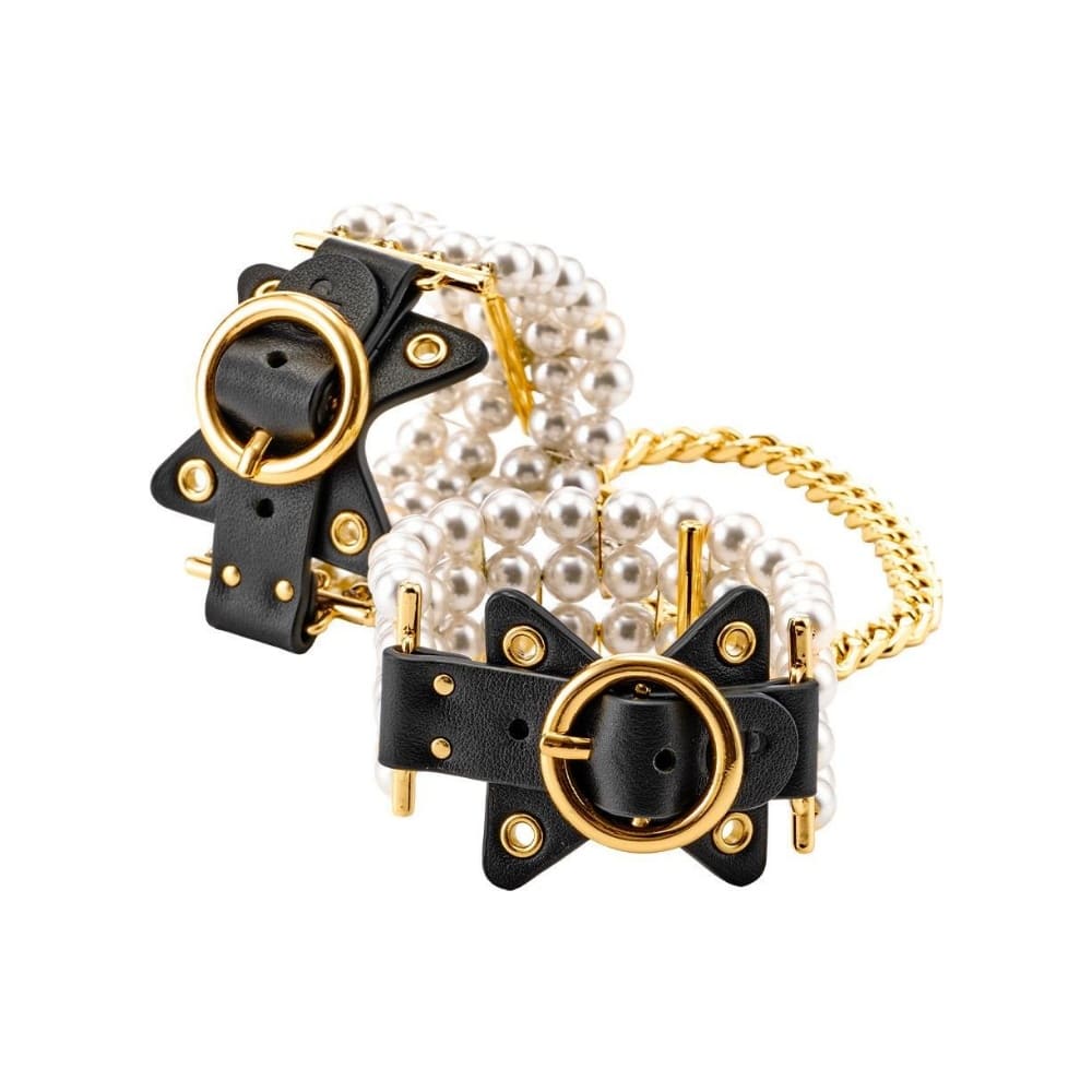 Белезниците за ръце от серията Allure на Guilty Pleasure — съблазнителен аксесоар, в който чувствеността среща изисканата естетика. Създадени, за да превърнат всяко движение в танц на покорството и страстта, тези перлени гривни за ръце съчетават нежна елегантност с непоклатимата сила на контрола. Всяка перла по тях отразява светлината по начин, който напомня за бавен валс под лунна светлина. Гладките им повърхности гъделичкат кожата при всяко движение, докато меките връзки осигуряват комфортно, но сигурно усещане за връзка. Това не е просто аксесоар — това е изкуство, родено от комбинацията между нежност и власт. Златистите метални елементи добавят модерна нотка на лукс, перленият детайл омекотява визията с нежност, а лъскавата черна кожа е преходът към власт. Удобните закопчалки и гъвкавата структура позволяват индивидуално прилягане – от фина украса за ръката до част от чувствена бондидж игра.