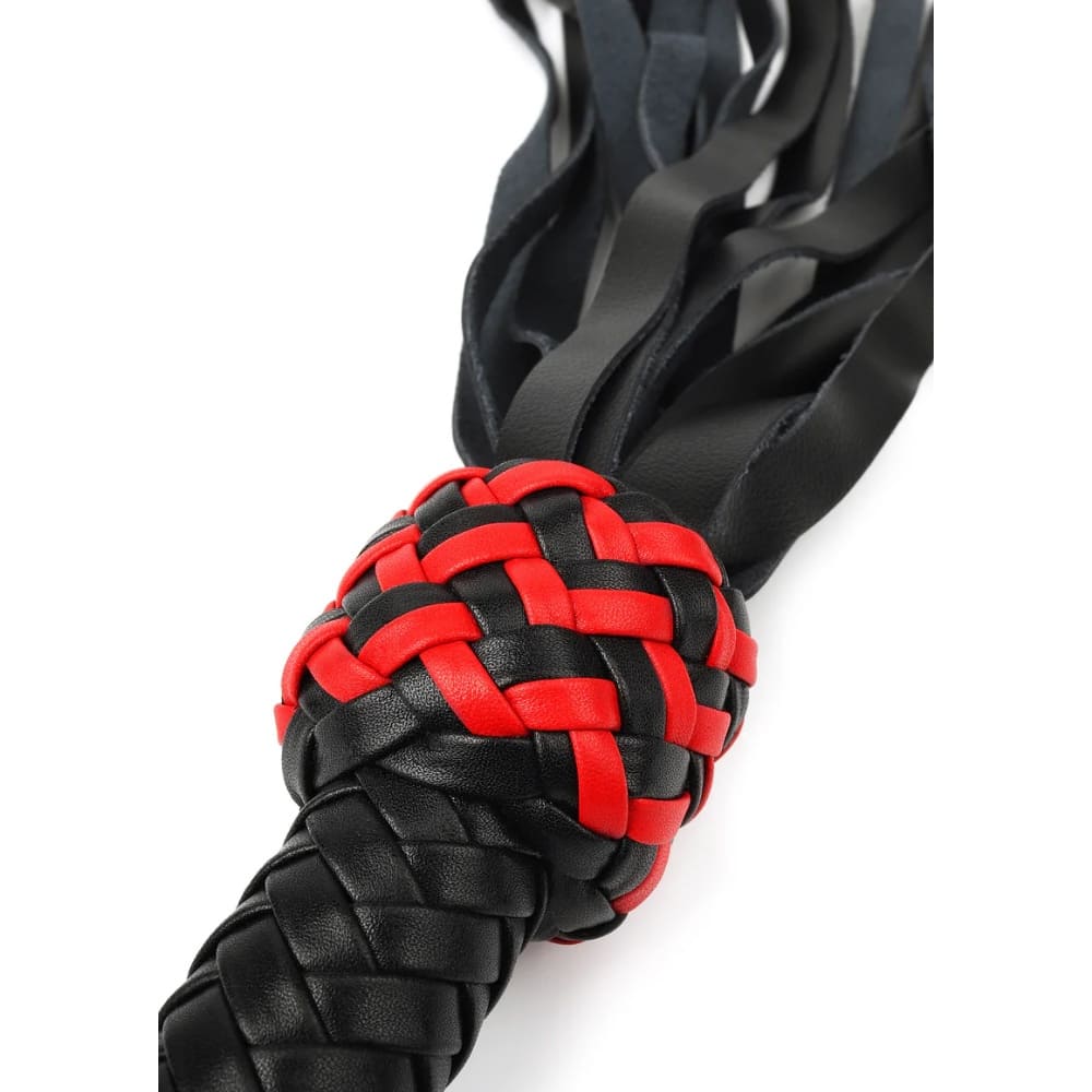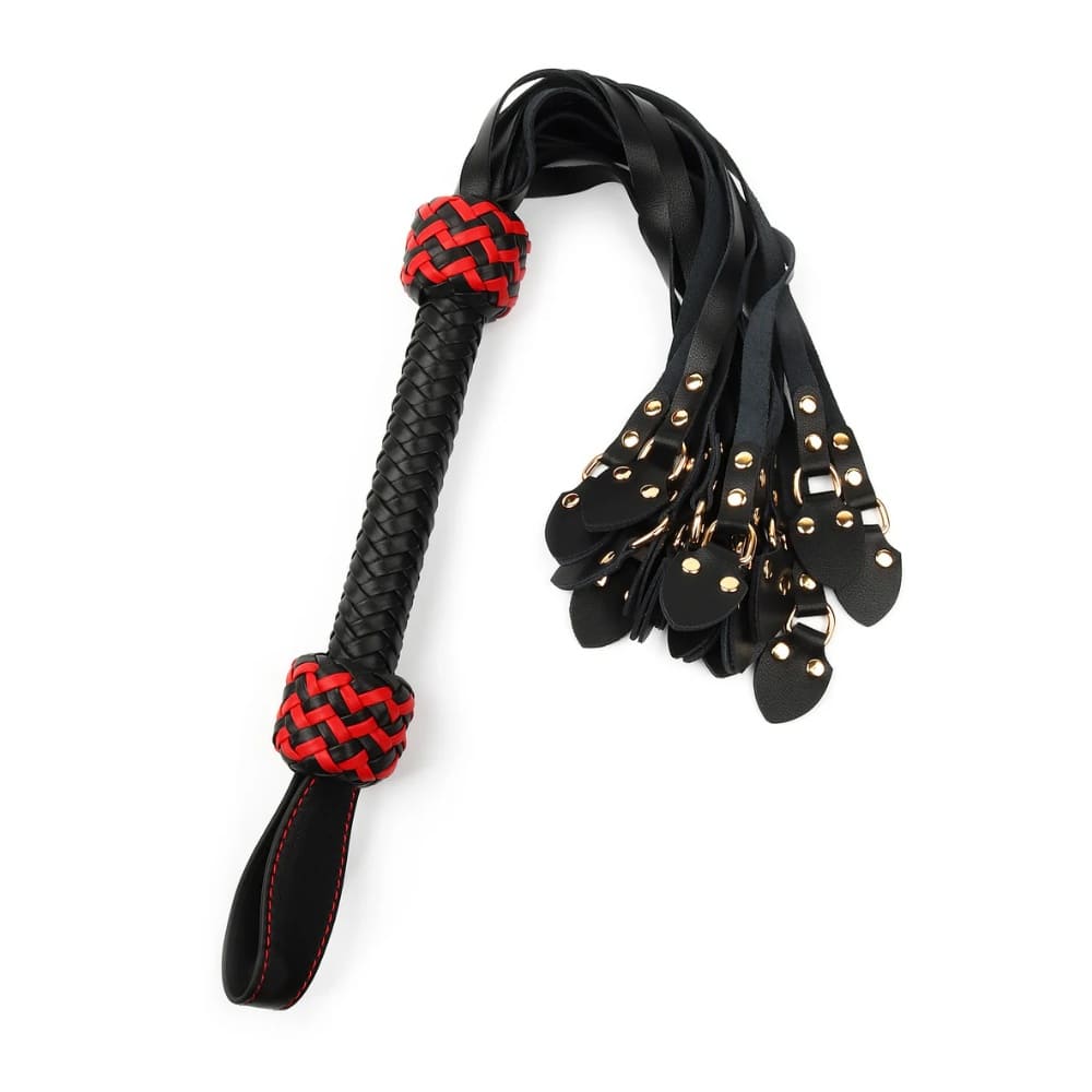 Плетената дръжка с червени акценти осигурява стабилен захват и пълен контрол върху движението на бичa. Изключително издръжлив и елегантен, този флогър е създаден за онези, които търсят смели преживявания и впечатляваща визуална естетика.