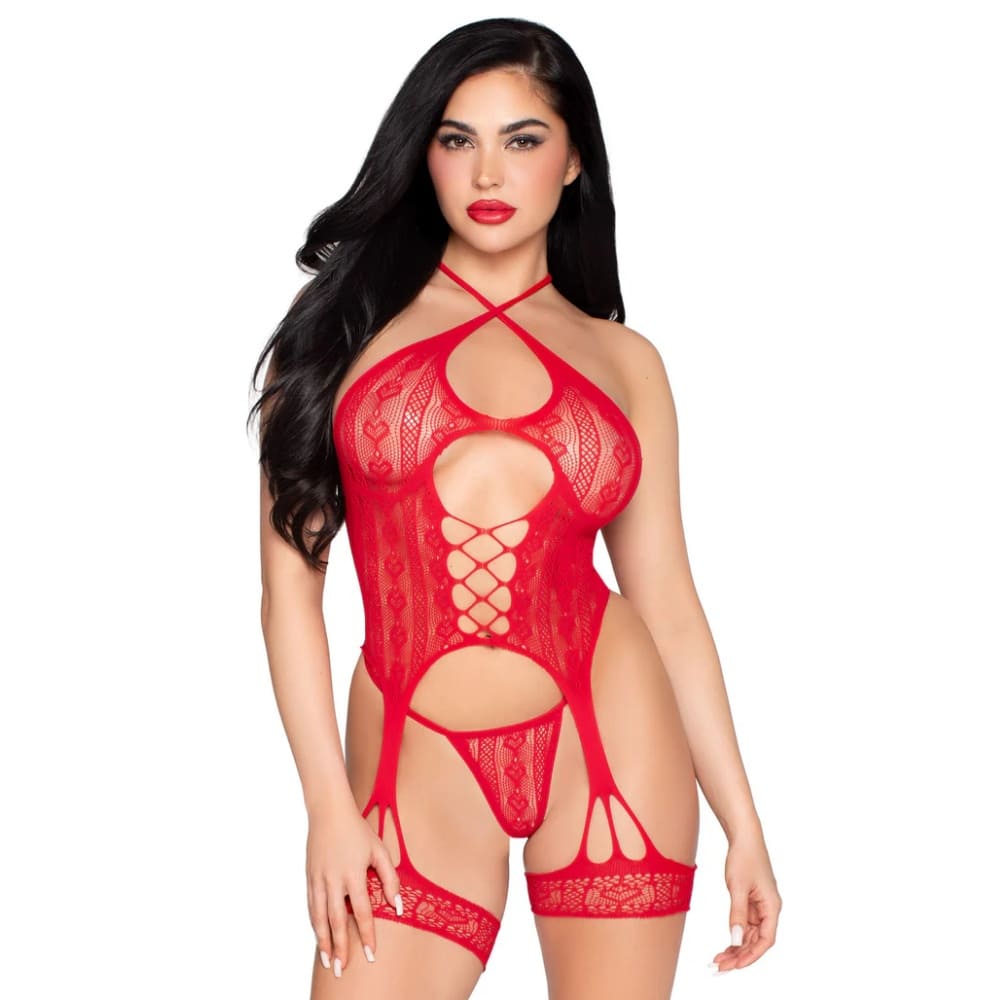 Потопи се в свят на изкушение и страст с това неустоимо боди с жартиери и прашка – създадено да разпалва фантазии и да подчертава най-съблазнителните извивки на тялото ти.
