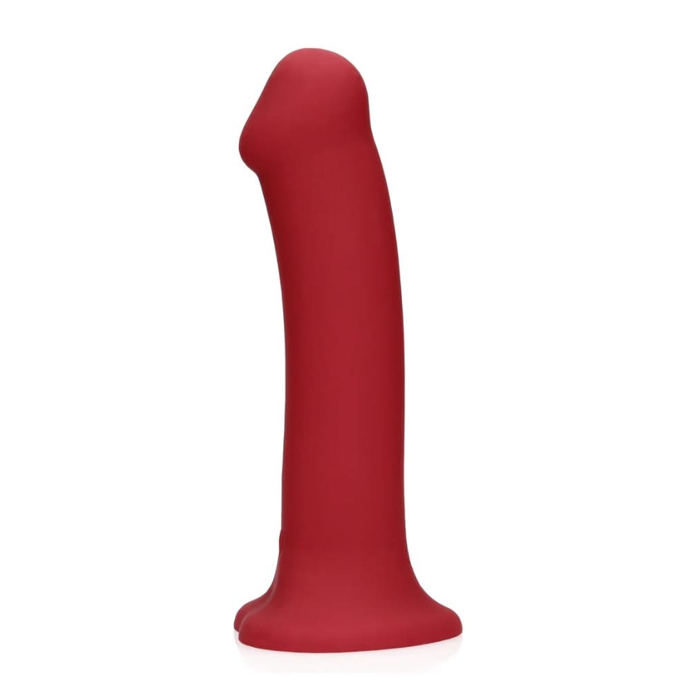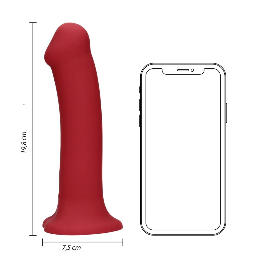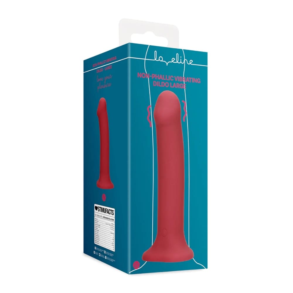 Кадифено мек силикон в страстен червен цвят със значителен размер под който грижливо е скрит мощен и изключително тих мотор доставящ множество разтърсващи вибрации - това е вибриращото дилдо на Loveline! Отдайте се на насладата на перфектното съчетание на анатомичен дизайн, изключително гладка повърхност и възможност за персонализиране на изживяването си, което е гаранция чувствено проникване и пълно задоволяване! Здравата вендуза в основата залепва за почти всяка гладка и плоска повърхност, така че дилдото да може да се използва без придържане с ръце. Вакуумната основа го прави подходящо и за ползване със съвместим пенис-колан. Добавете капка лубрикант на водна основа, за да стане изживяването ви още по-хлъзгаво и приятно!
