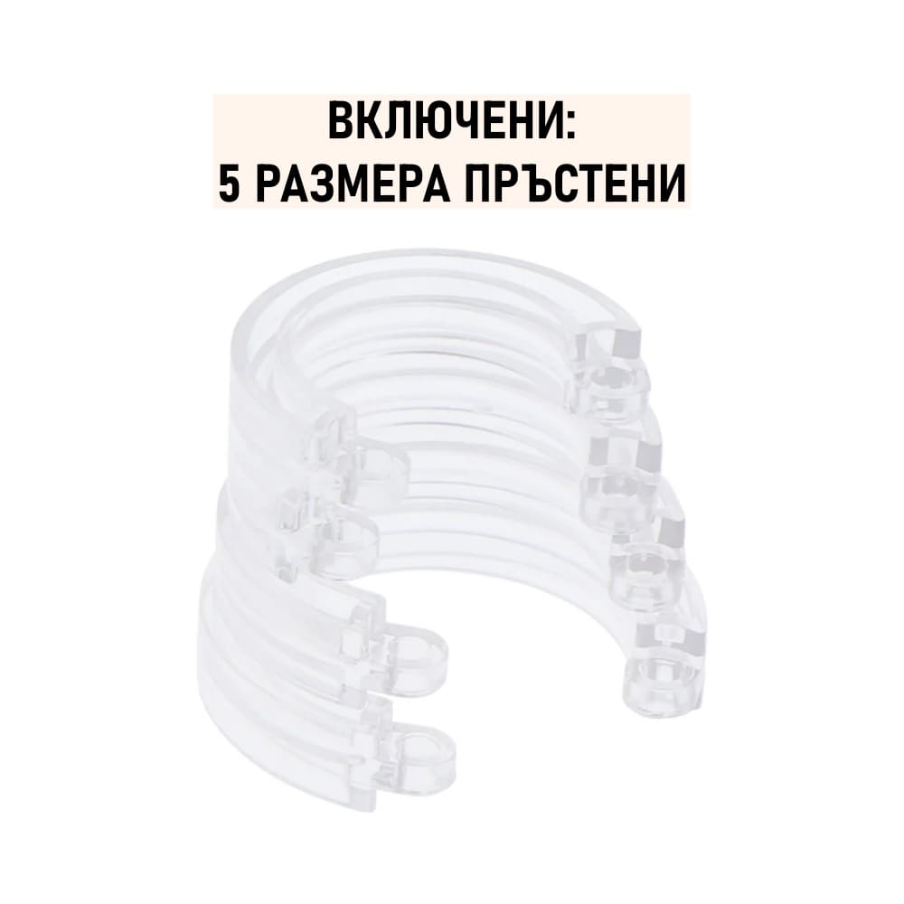 - 5 пръстена с различен диаметър - 3,5 / 3,8 / 4,2 / 4,5 / 4,8 см