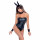 Костюмът се състои от пет части: матово, еластично боди без презрамки, пухкава и закачлива опашчица, стилни маншети за китките, диадема с плюшени заешки уши и яка с папийонка.