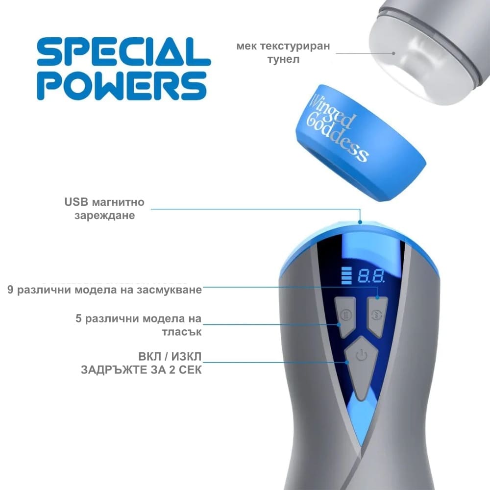 • Многофункционален мастурбатор със засмукване и тласък,