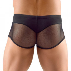 Дизайнът залага на контраста между материите: горната част, около талията, е направена от мек, плътен и непрозрачен микрофибър, който осигурява стабилност и комфорт. Долната част обаче преминава в изключително фина и напълно прозрачна мрежа (net), която обгръща бедрата и интимната зона, оставяйки всичко на показ. Благодарение на еластичния микс от материали, боксерките прилепват като втора кожа, без да стягат или да причиняват дискомфорт. Те са перфектният избор за моментите, в които искате да съчетаете удобството на класическото бельо с дръзката еротика на прозрачните материи.