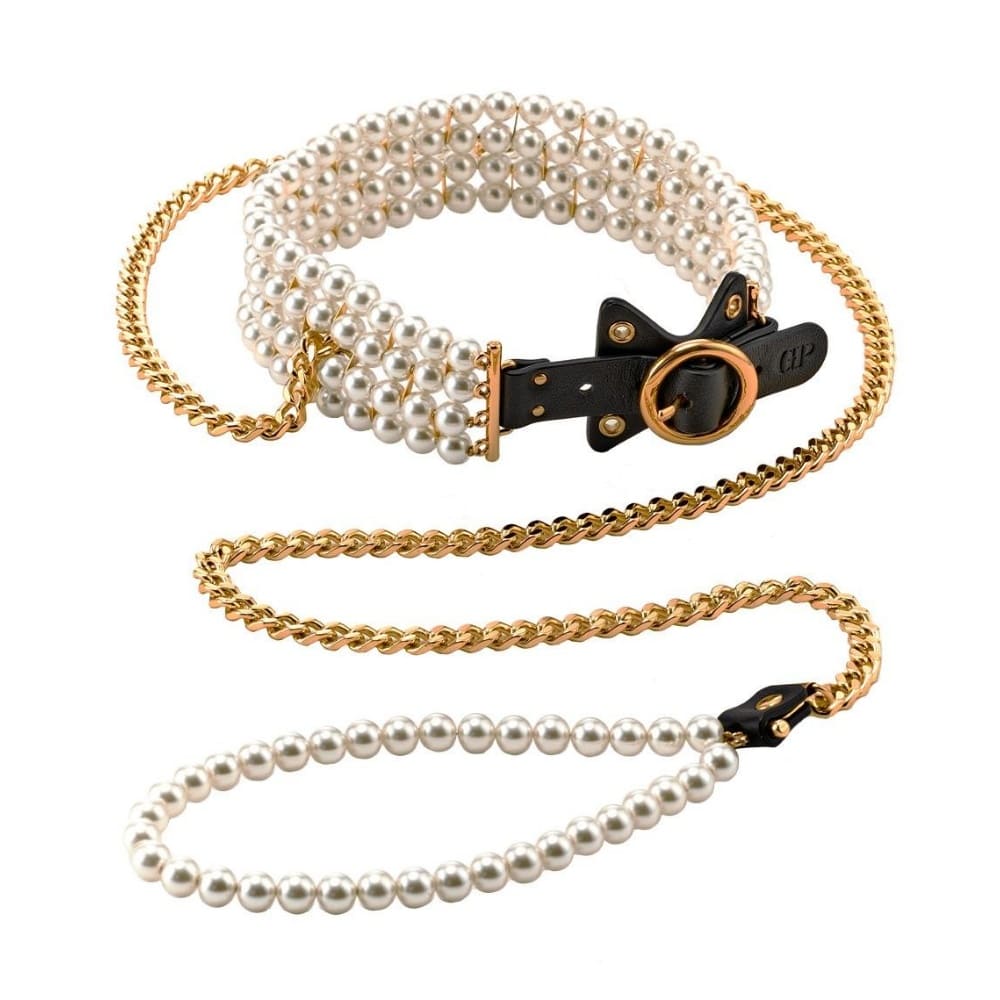 - Нашийник с повод с перлени детайли за визуална изтънченост