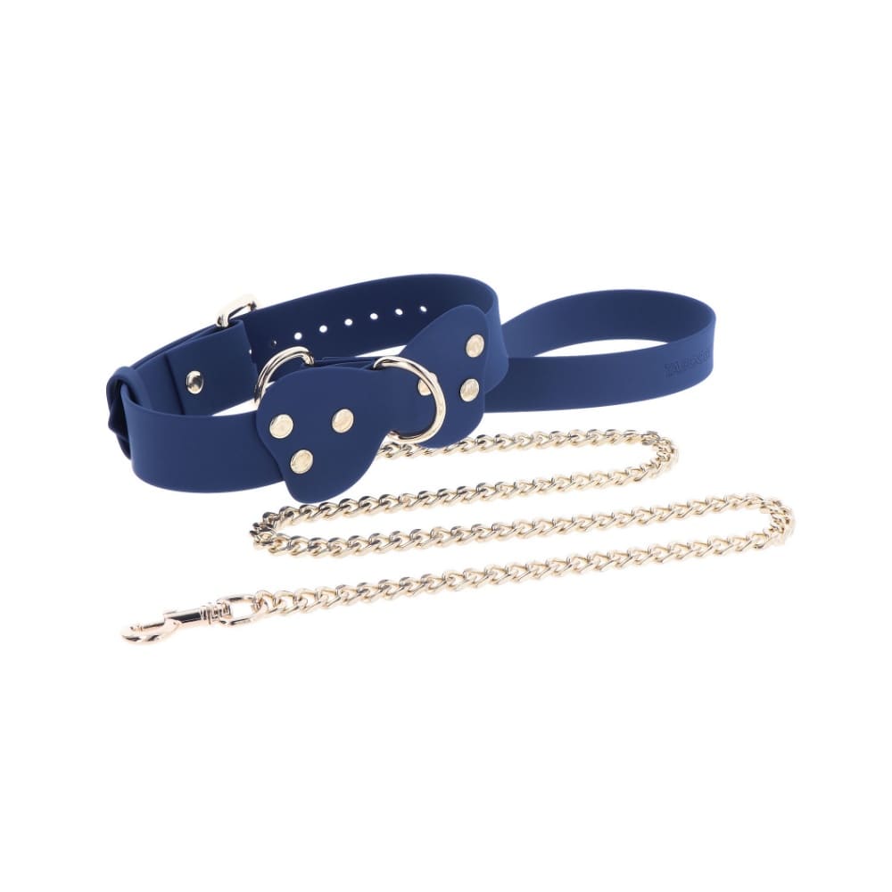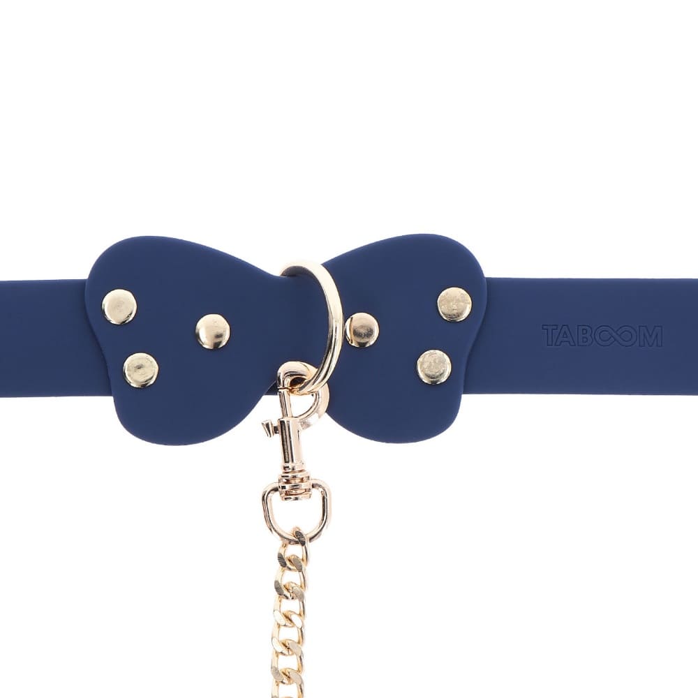 Нашийник с повод Taboom е създаден от гъвкав медицински силикон в страстно кралско синьо и златисти елементи, за да бъде както красив, така и изключително удобен за носене. Нашийникът може да се регулира и е издръжлив и удобен аксесоар за всеки любител на BDSM игри. Време е да освободите тъмната си страна! Подходящ аксесоар в комбинация с всички останали BDSM продукти от серията Silicone Supreme на Taboom.