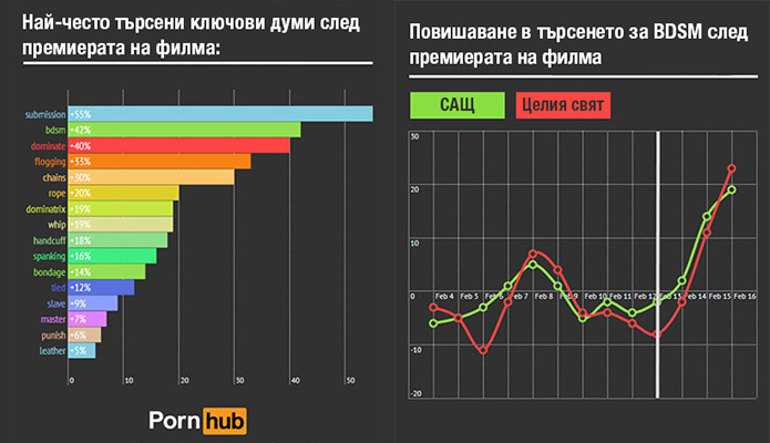 Сайтът е изобразил в графики промените в търсенето от премиерата на филма насам. Вижда се ясно как сексуалните ни предпочитания се влияят от външните стимули.