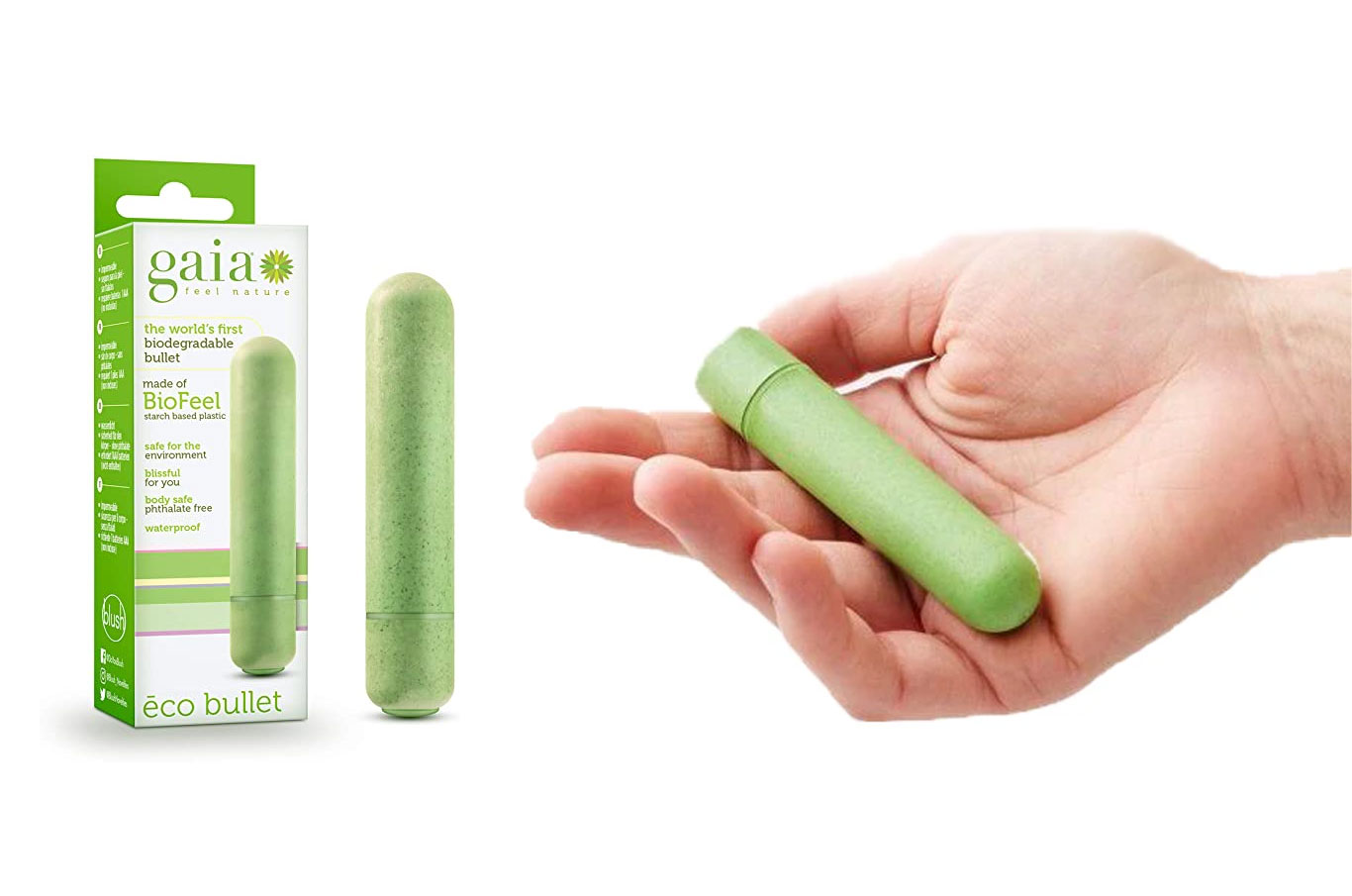 GAIA Eco е виброкуршум, изработен от Biofeel еко пластмаса, на основата на нишесте, която се разгражда при рециклиране. Изключително достъпен като цена и дискретен на външен вид, той е идеален аксесоар за дамите, които са в хармония с природата и с телата си. Без вечни пластмаси, без фталати и без латекс.