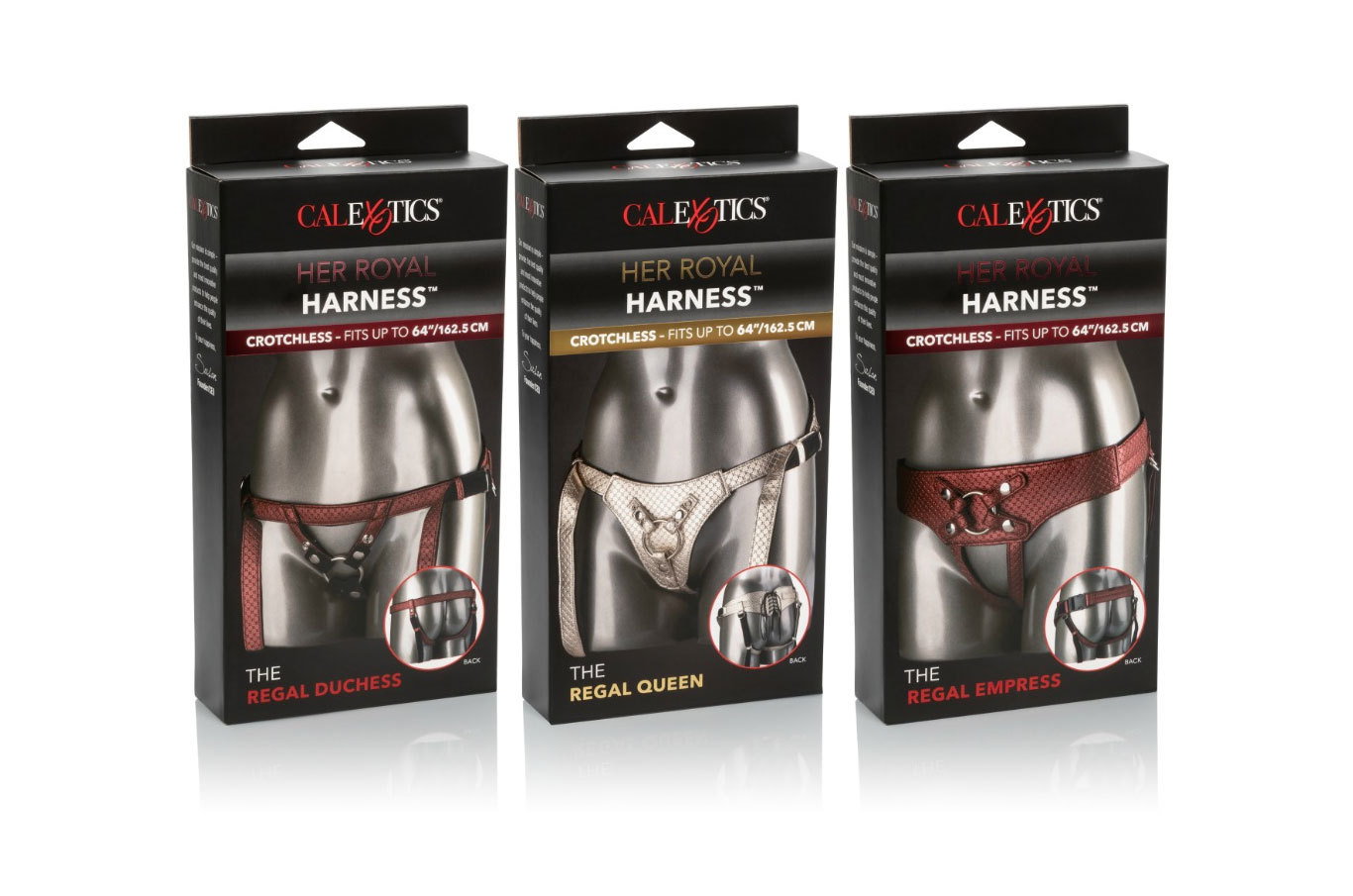 Пенис коланите от серията THE ROYAL HIGHNESS: REGAL DUCHESS и REGAL EMPRESS са за Огън Жени. Те са създадени с мисъл и вкус. Стабилни. Адаптивни. Красиви. Удобството при носенето им позволява съзнанието да се насочи там, където е най-необходимо: към удоволствието. Външният им вид пък възбужда фантазията на всички замесени в тази царствена игра на похотта. Независимо дали обладаваният партньор е мъж или жена, в техните очи носещата колана е Господарката и тя държи целия контрол.