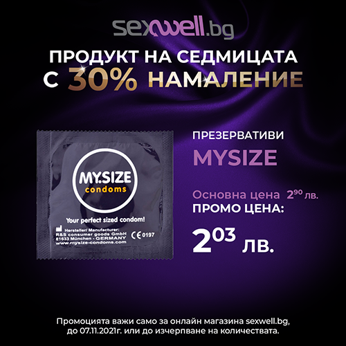 Всяка седмица един топ продукт без свян сваля 30% от своята цена! Тази седмица това са презервативи с разнообразни размери My SIZE!
