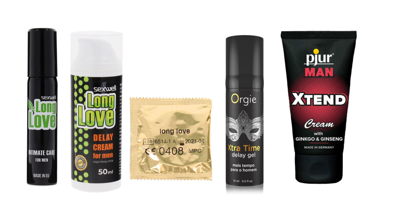Задържащите козметични продукти са предназначени само за мъже и най-често идват под формата на крем или спрей с дозатор (така че да се разпръсква равномерно и в определено количество). Повечето съвременни задържащи спрейове са на козметична основа и съдържат Laureth-9, тъй като вече е забранено производството на персонална козметика с лидокаин.