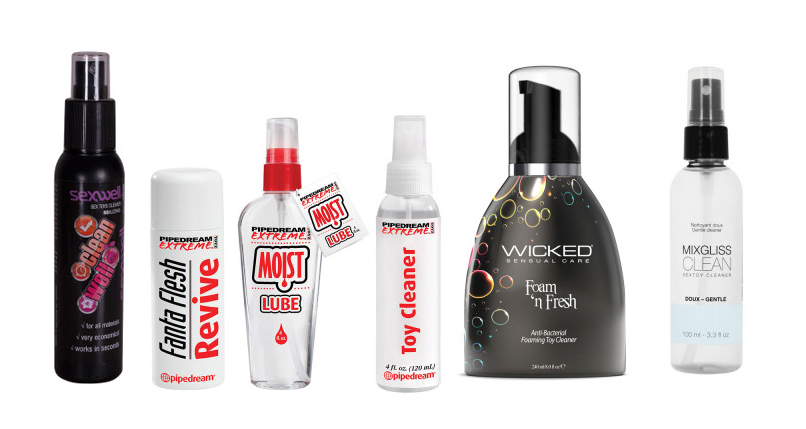 Почистващите продукти са предназначени за поддръжка на секс играчки. Те се произвеждат под формата на спрейове, пяна, талк или кърпички. Почистващите спрейове Clean Well с алкохол и без алкохол могат да бъдат използвани с всички видове секс играчки. Желателно е при продажба на каквато и да е играчка да предлагате и почистващ спрей.