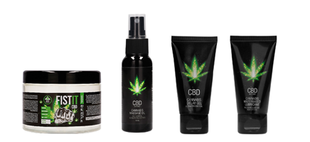 Лубрикант Fist It #2193, Масажно олио #2192, Лубрикант на водна основа със CBD #2191, Гел за задържане на ерекцията със CBD #2190 имат както масло, така и екстракт от семена на Канабис Сатива, тоест съставката им хидратира и успокоява кожата при интензивна игра, има противовъзпалителен ефект, подхранва тъканите и ги защитава от микро наранявания.