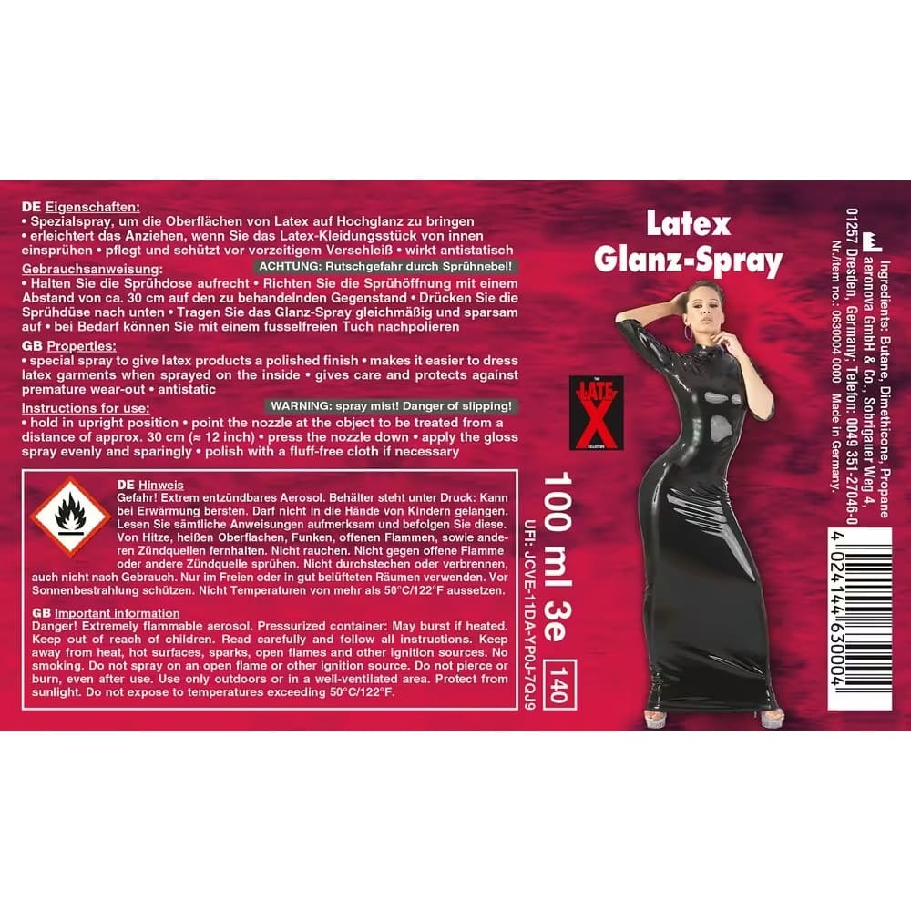 Подарете на латекса си луксозен и бляскав живот с LATE X – специално разработен спрей за придаване на дълбок, огледален ефект върху латексови, винилови и гумени облекла или аксесоари. Незаменим продукт за фотосесии, сценични изяви, партита или всеки повод, в който искате да изглеждате дръзко и изкусително.