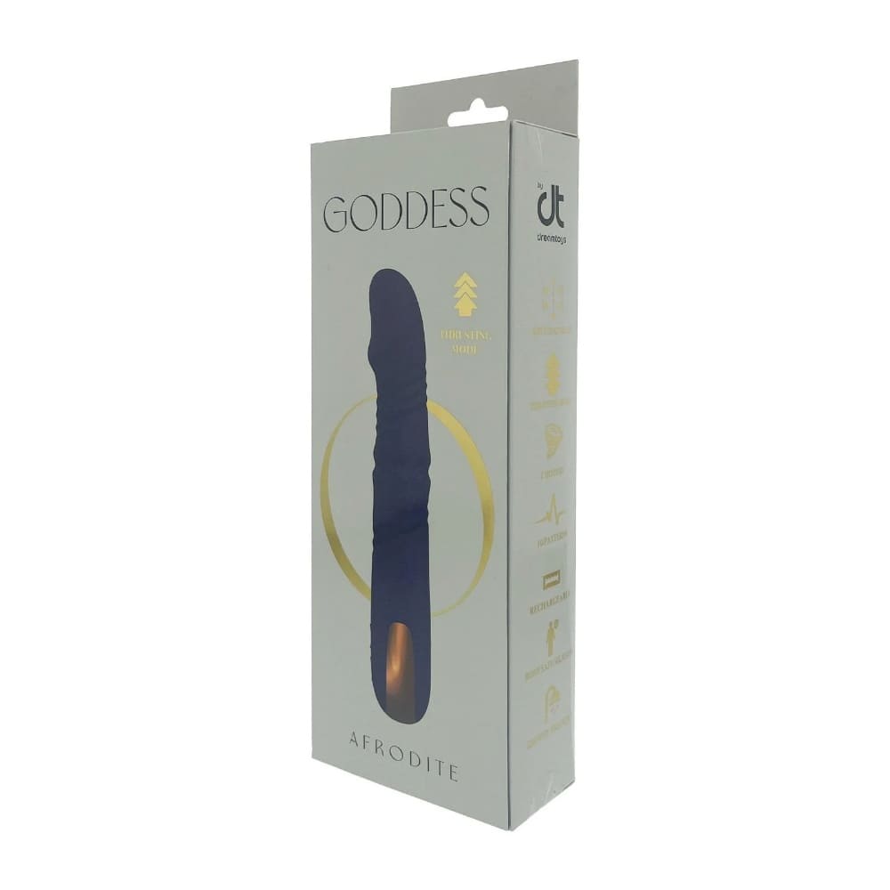 Потопете се в света на божествената наслада с Afrodite – уникален вибратор от луксозната колекция Goddess на Dreamtoys, създаден да ви дари с интензивни, дълбоки и напълно персонализирани удоволствия. Този впечатляващ вибратор комбинира движения нагоре-надолу в седем интензитета с три скорости и десет режима на вибрации, за да пресъздаде усещане, максимално доближаващо се до реалното. А въртящите се перли във вътрешността му осигуряват чувствен масаж на G-точката – за експлозии от оргазми, които ще ви оставят без дъх. Снабден с два независими мотора, Afrodite ви позволява да управлявате функциите за вибрации и движение отделно, благодарение на интуитивното управление с два бутона. Така имате пълен контрол над всяка секунда от вашето интимно преживяване.