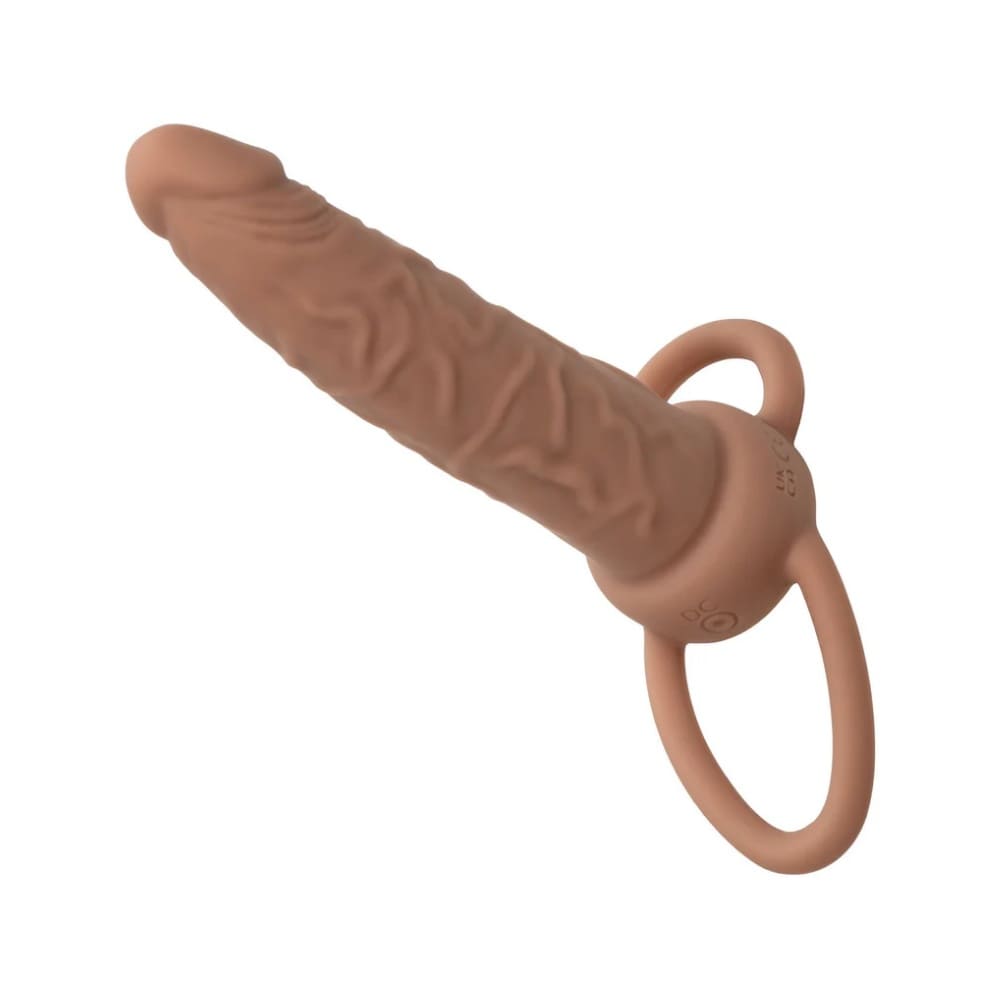 Вибраторът за дойно проникване ще изведе вашето стимулиращо действие до нови оргазмени висоти, защото е проектиран да доставя усещане за „изпълващо“ двойно проникване, на което вие и вашата половинка копнеете да се насладите. Универсалният, копринено гладък силиконов стимулатор с реалистична форма ви позволява да се наслаждавате на двойното забавление. В основата на пенетратора има еластични бримки, които удобно се плъзгат върху еректиралия пенис и осигуряват опора на тестисите по време на проникваща игра, като и там е позициониран интуитивен бутон за управление на десетте режима на вибрация, пулсация и ескалация, с които да засилите аналното и не само, експлоадиращо удоволствие. Вибраторът за двойно проникване и напълно водоустойчив и може да пробвате първата си тройка както под душ, така и във вана. За по-лесно и приятно проникване просто добавете желаното количество лубрикант на водна основа.