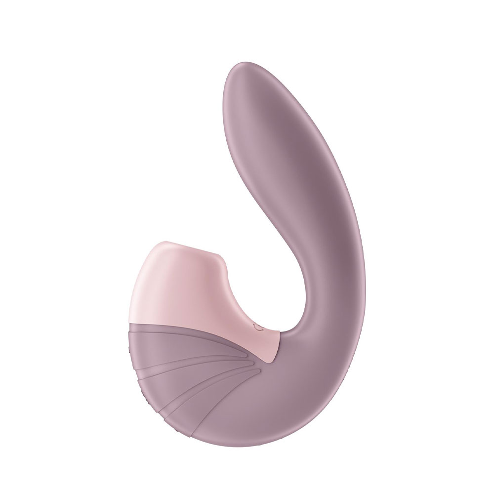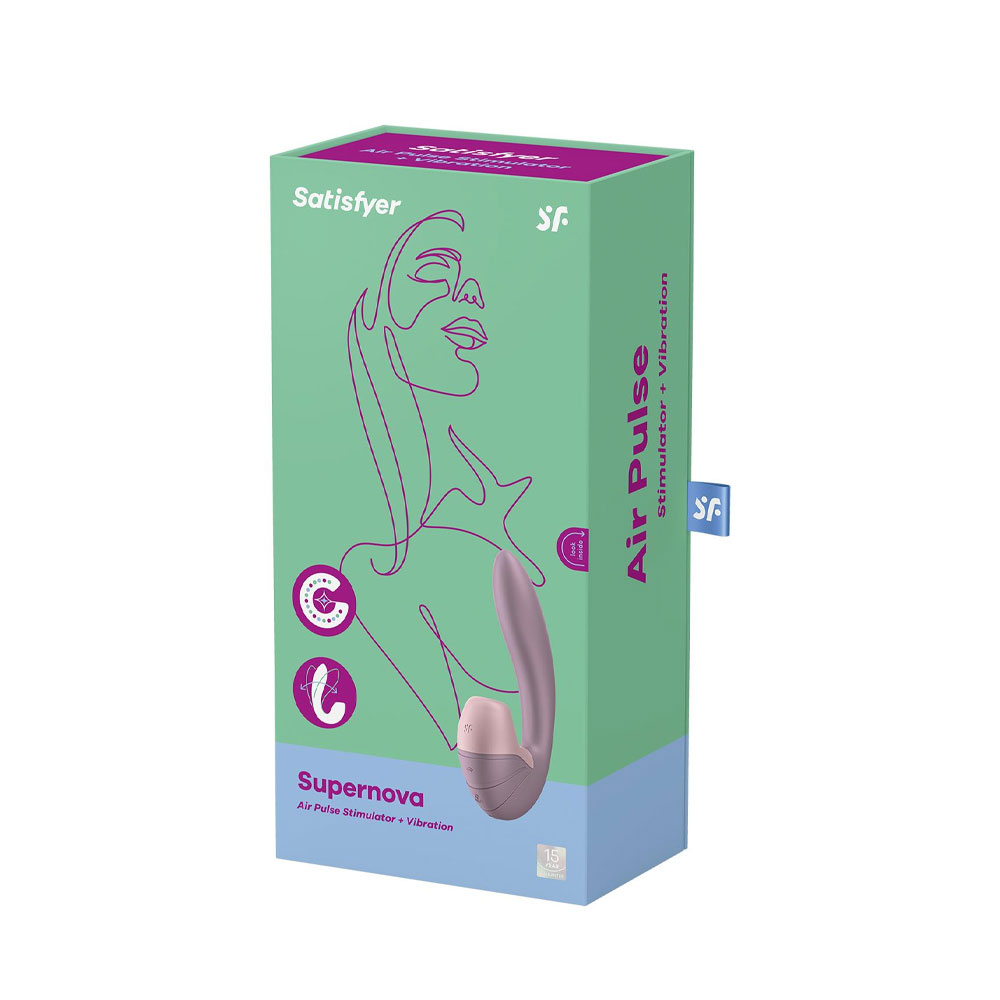 Satisfyer Supernova съблазнява клитора с чувствени въздушни импулсни вълни, като същевременно стимулира G-точката с мощните си вибрации. Благодарение на гъвкавата връзка между двата накрайника, силиконовият вибратор се адаптира към анатомията на жената, за да предостави перфектна стимулация. Двата двигателя, туптящи в тялото на Supernova могат да се управляват поотделно, позволявайки множество комбинации между различните им функции. Supernova е изработена от хигиеничен силикон, презарежда се и е с водоустойчивост IPX7.