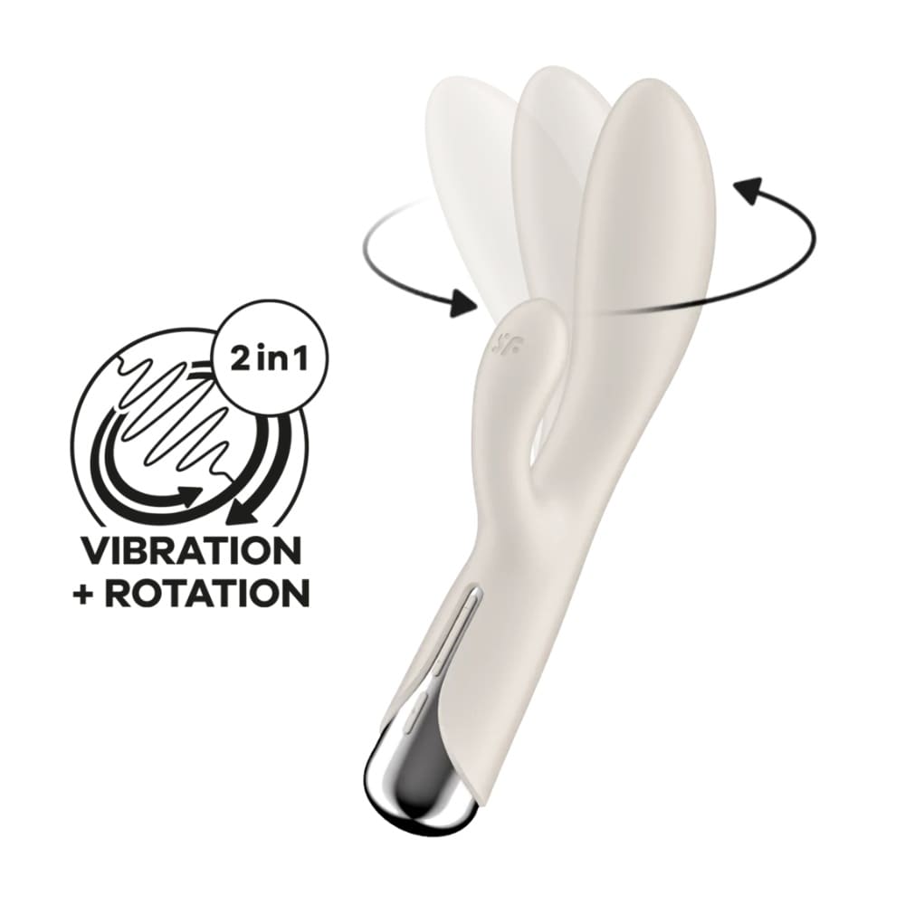 Ако търсите интензивна и едновременна стимулация на клитора и G-точката, то Satisfyer Spinning Rabbit е тук, за да ви отведе до ново ниво на удоволствие. Този иновативен вибратор пит "заек" комбинира класическа вибрация с революционна въртяща се функция, която ще разтърси сетивата ви и ще ви достави незабравими моменти на екстаз. Двойната стимулация на G-точката с въртящ се ствол и интензивни вибрации върху клитора се управляват поотделно или като ги комбинирате за максимален ефект с интуитивните бутони в основата на играчката. Дванадесетте програми за вибрация започват от леки трептения, за да достигнат мощни пулсации, а петте програми на ротация в двете посоки ще допълнят възможността за персонализирано удоволствие. Ергономичният дизайн на Satisfyer Spinning Rabbit е създаден да пасне идеално на извивките на тялото ви. Изработен от щадящ кожата, хипоалергенен силикон Spinning Rabbit 1 е нежен към кожата ви и осигурява копринено меко усещане при допир. Гъвкавата и еластична текстура позволява плавно и приятно проникване. Добавете капка лубрикант на водна основа, за да го направите още по-приятно.
