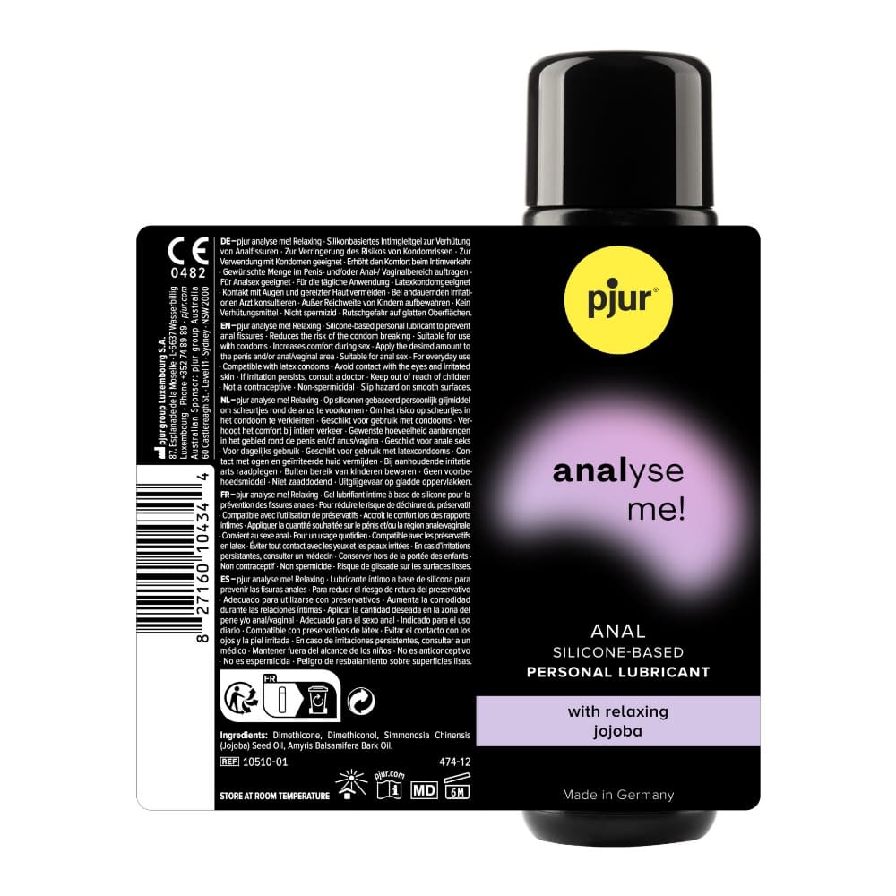 Анален лубрикант pjur analyse me! е новият ви най-добър приятел в палавите "забранени" удоволствия! Силиконовата формула с висококачествени екстракти от жожоба е разработена специално да осигури релаксиращ анален полов акт. Жожобата е естествена съставка, която омекотява и овлажнява кожата, като я прави мека и гладка, отпуска сфинктера и създава копринено гладко усещане без никакъв изтръпващ ефект.