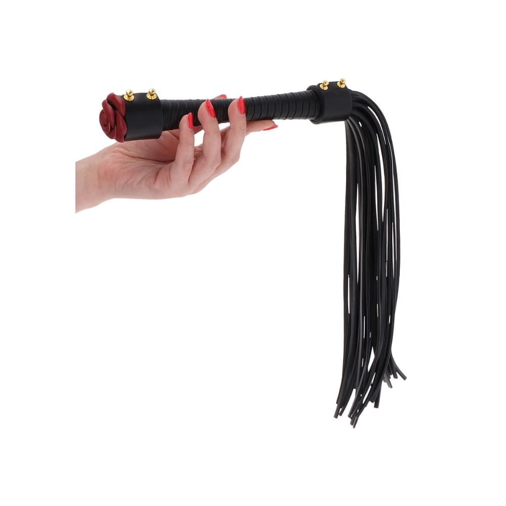 Бич Taboom Wild Roses е в покоряващ черен цвят, златни елементи на каишите и страстна червена роза от естествена кожа на дръжката, които придадат на вашите BDSM забавления завладяващ разкош и ще ги издигнат на по-високо ниво. Открийте своята доминираща или покорна страна с този луксозен бич, като дадете воля на желанията си и се отдадете на завладяваща игра, можете да доставяте удоволствие, да контролирате и покорявате любовника си. Ресните са изработени от мека веган кожа, а дръжката е стабилна и украсена с златни елементи. Подходящ аксесоар в комбинация с всички останали BDSM продукти на Taboom.