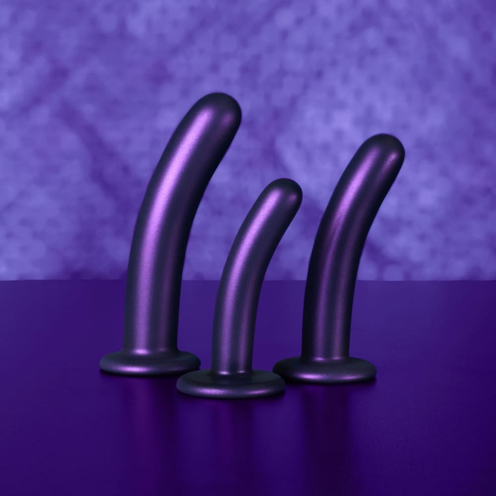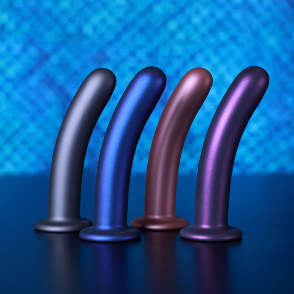 Съвършено гладкото и извито дилдо за G-точка на OUCH! е тук, за да задоволи вашите желания. С метализираният си външен вид и невероятно нежната си текстура то се плъзга изключително леко във всяка вагина или анус. Излято от течен силикон, дилдото е изключително гладки и не би подразнило така чувствителната ви плът. Извитата му глада е идеална за стимулиране на на G-точката. Ултра-здравата вендуза в основата залепва за почти всяка гладка и плоска повърхност, така че дилдото да може да се използва без придържане с ръце, например на плочките в банята. Вакуумната основа прави дилдото подходящо и за използване със съвместими пенис-колани. Нанесете желаното количество лубрикант на водна основа, за да подобрите проникването.