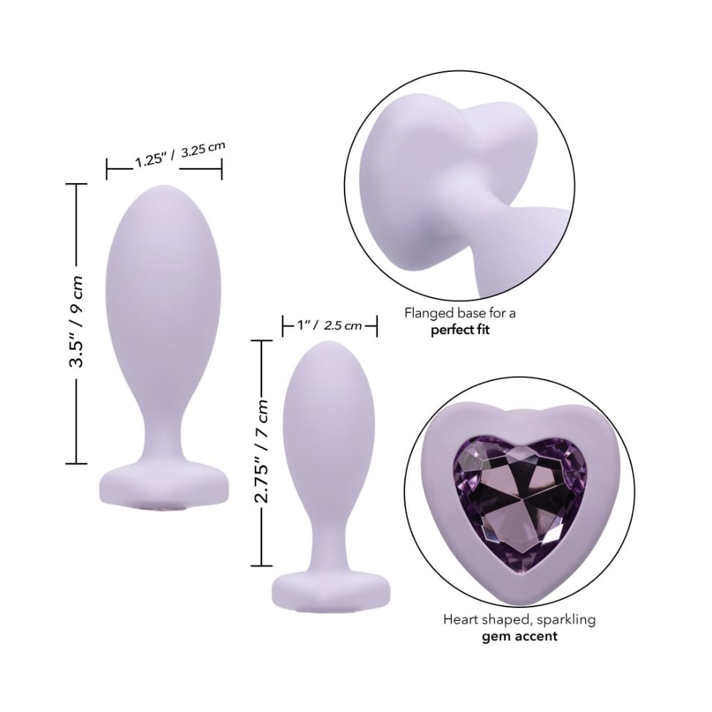Плоската, разширена основа на всеки от двата бът плъга гарантира, че той би останал удобно на място, което ви позволява да се съсредоточите върху усещанията си. Една от отличителните характеристики на тези тапи е ослепителна сърцевидна кристална основа, която добавя нотка блясък и изтънченост към изживяването ви при анална игра. Независимо дали използвате разширителите за самостоятелна игра или с партньор, красивото бижу със сигурност ще привлече окото и ще добави допълнителен елемент на вълнение. Този комплект анални разширители е не само функционален, но и естетичен.