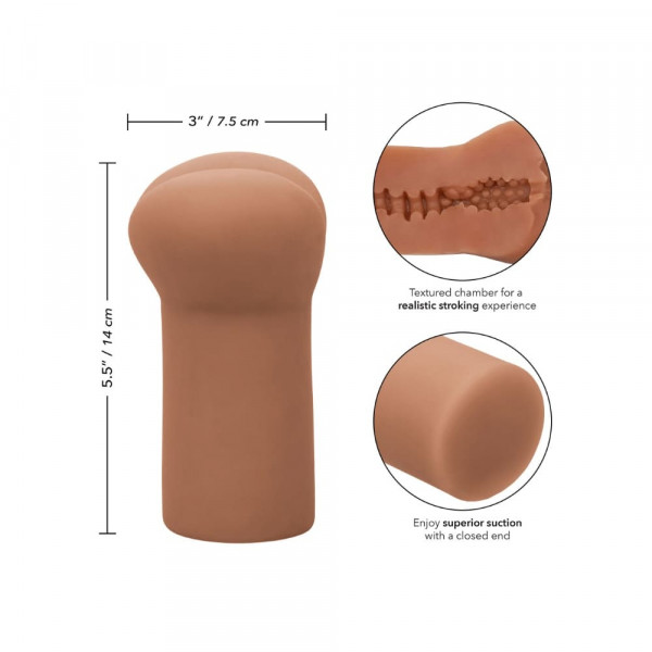 Leather Daddy e стегнат карамелен анус мастурбатор изработен от супер меката и реалистична материя Pure Skin на CalExotics. Със съблазнителна текстура отвътре, за вълнуващи усещания при всяко проникване и затворения тунел за невероятно засмукване Cheap Thrills Leather Daddy е готов за чувствена стимулация точно там, където я искате... и когато я поискате. Лесен и удобен за ползване, той се придържа с ръка по време на мастурбация и може да се използва както с кондом, така и без.