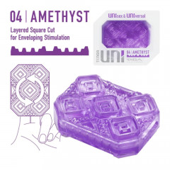 Мастурбатор Tenga Uni Amethyst пристига при вас във неземни виолетови нюанси, с разнороден релеф, но изключително финна текстура за обгръщаща и чувствена стимулация. В комбинация с включената доза лубрикант, при движение нагоре-надолу / навътре-навън, специалният релеф ще предизвика у вас страхотни усещания и емоции. Изработен Super Stetch еластомер, Tenga Uni Amethyst се разтяга, за да побере почти всеки размер.
