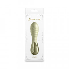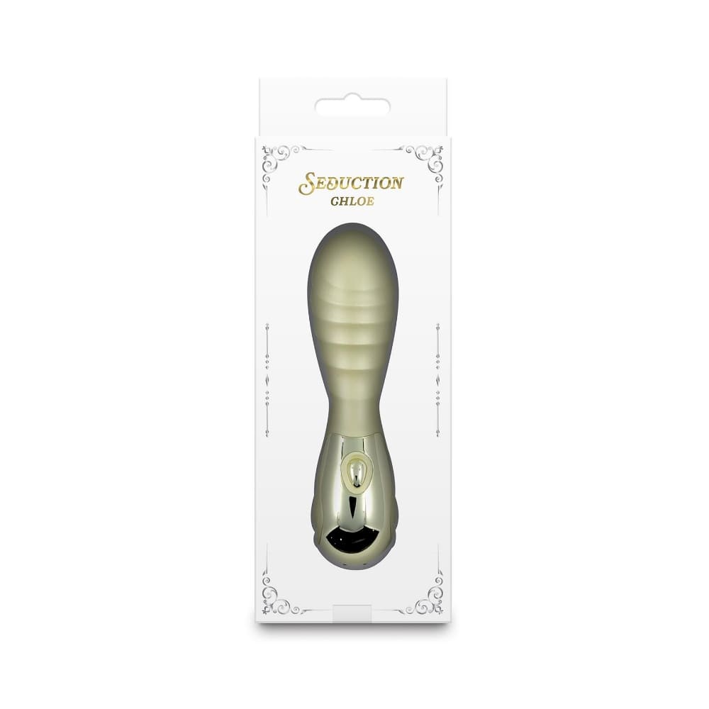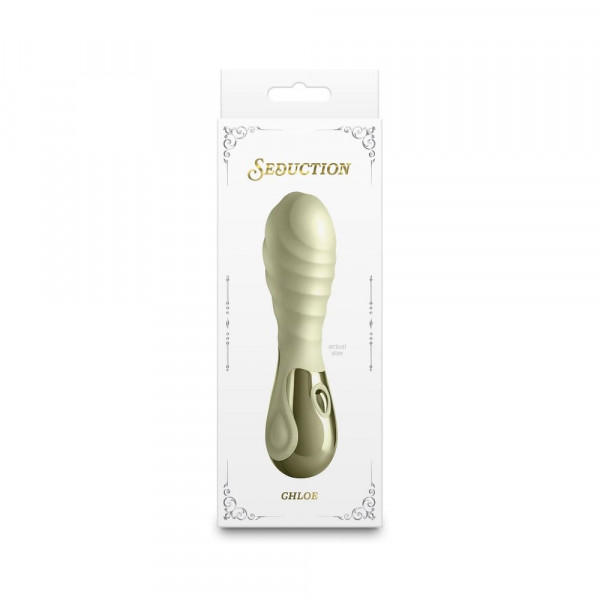 Мини вибраторът SEDUCTION CHLOE е компактен с набразден ствол, изработен от копринено мек и нежен силикон, за да доставя еуфорични усещания. CHLOE разполага с богат набор от вибрационни режими, които се управляват изключително лесно чрез интуитивен метализиран бутон в основата на играчката. Дискретният размер на вибратора го прави идеален спътник при пътуване, позволявайки ви да прегърнете удоволствието, където и да ви отведат вашите фантазии. Добавете желаното количество лубрикант на водна основа, за да подобрите изживяване!