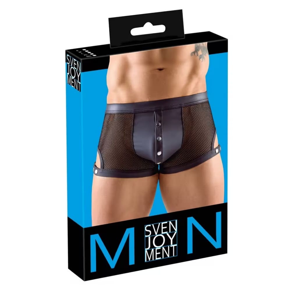 Дизайнът на боксерките включва комбинация от мрежа и лъскава, приятна на докосване материя. Стегнатата кройка и черната прозрачна мрежа подчертават перфектно слабините и задната част, докато вашата сила е на сигурно място в непрозрачна част, която разполага с лента с тик-так копчета, за да може бързо и лесно да я използвате.