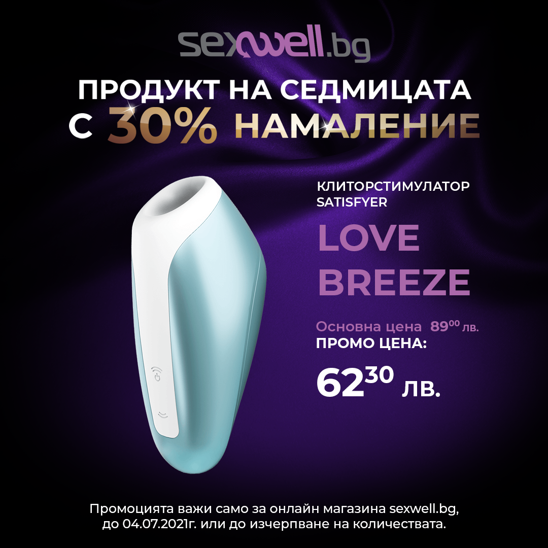 Със своята удобна форма и дискретна визия, Satisfyer Love Breeze е идеалният клиторстимулатор, когато сте на път: той стимулира клитора безконтактно с 11 разнообразни степени на интензивност, които се управляват удобно от интуитивно контролно поле. Ще се скрие незабележимо в дамската чанта, а благодарение на презаредимата си батерия е винаги готов, когато Ви обземе желание за възбуждаща стимулация.