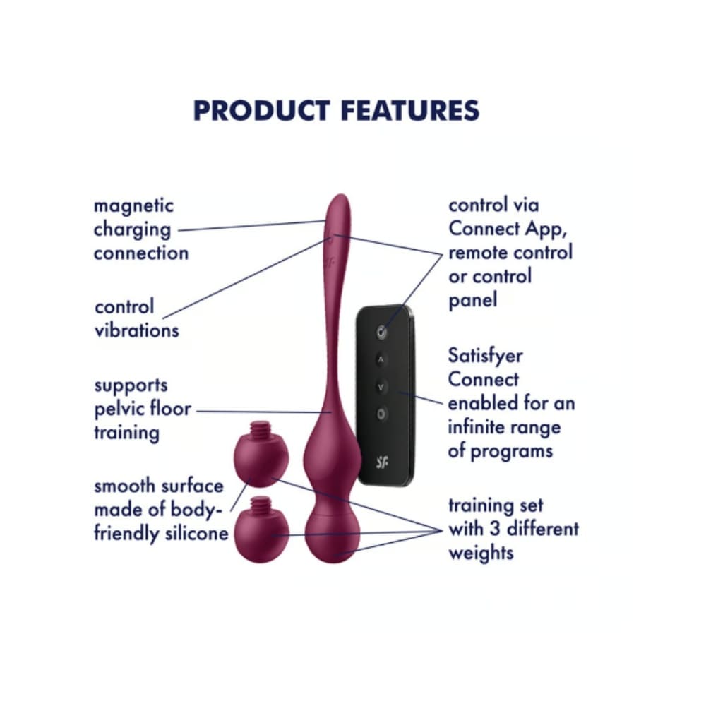 Напредвай постепенно със сменяемите тежести, които правят този уред перфектен избор както за начинаещи, така и за напреднали. Наслади се на едновременно трениране на тазовото дъно и вибрираща стимулация на G-точката за още по-дълбоко и страстно удоволствие. Свържи Love Birds Vary с безплатното приложение Satisfyer Connect чрез Bluetooth и персонализирай вибрациите си по напълно индивидуален начин, а ако нямаш телефон под ръка, то тогава използвай включеното дистанционно управление! Изработени от напълно безопасен и изключително нежен и приятен за тялото силикон с множество вибрационни програми за интензивни оргазми и ефективни тренировки, Love Birds Vary повишават сексуалната чувствителност и удовлетворение.