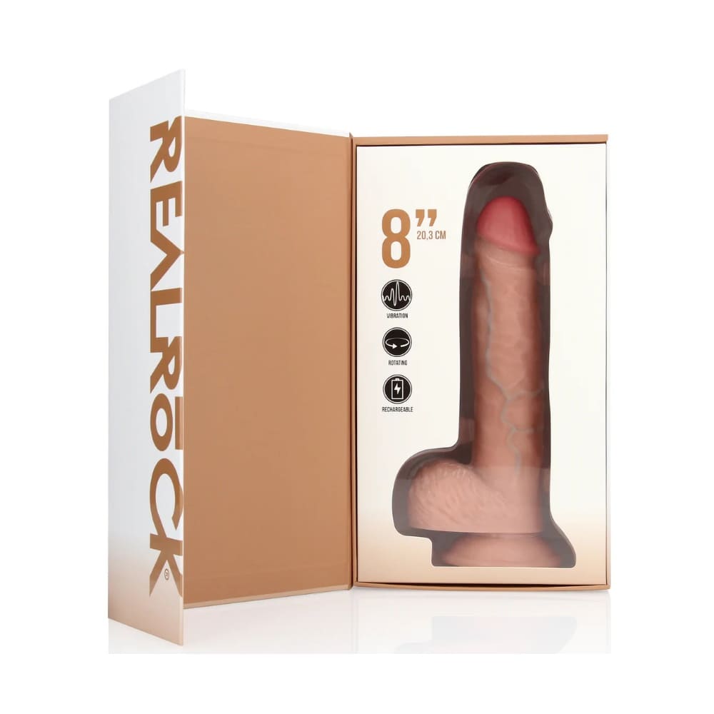 RealRock® е проектиран да ви задоволи максимално. Твърд във вътрешността си и приятно мек отвън, с естествено изглеждащ дизайн с тестиси и с изкусителен размер в комбинация с реалистичните вени на ствола, даващи допълнителна стимулация отвътре и мощния мотор осигуряващ ви вибрации и ротация, това със сигурност е дилдото, което няма да събира прах в нощното шкафче, а ще излиза при всяка удобна възможност. Реалистичното дилдо има лека извивка, която го прави идеално за стимулация на G-точката.
