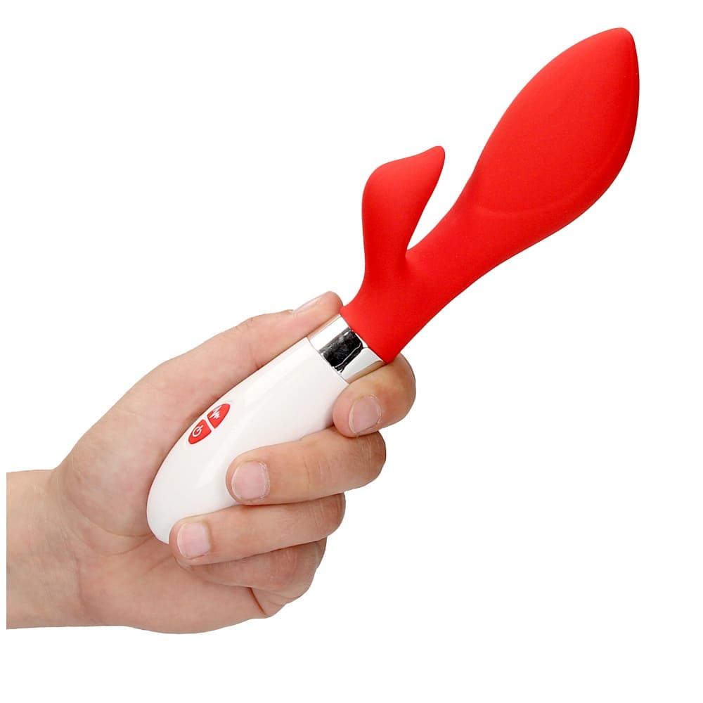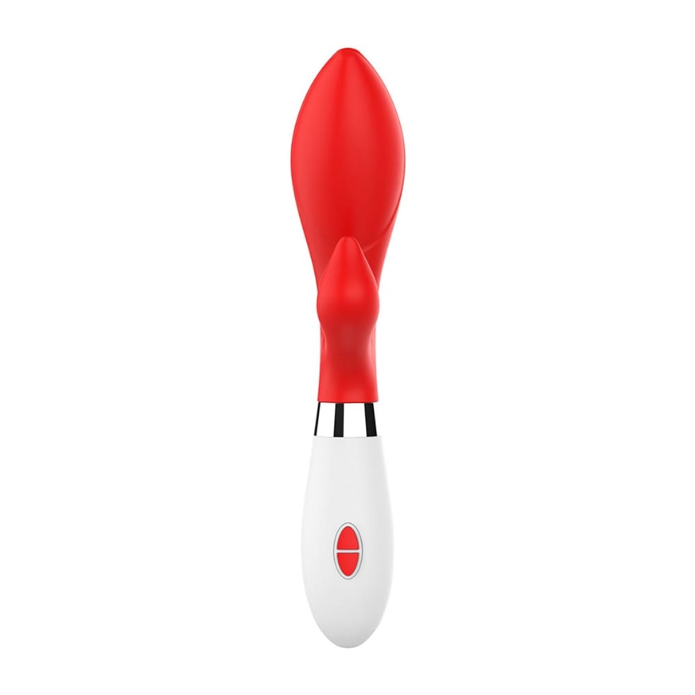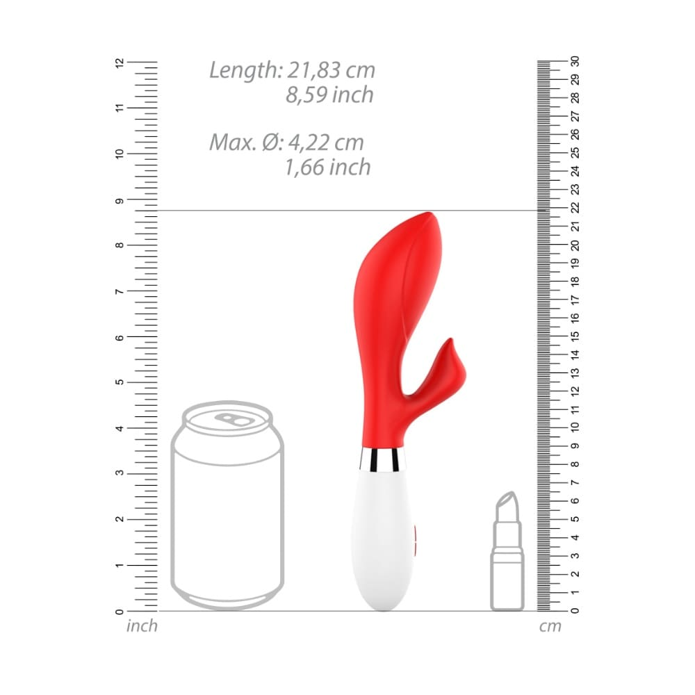 Божественото червено тяло на този свръхмощен мултифункционален вибратор е създадено, да доставя наслада, стимулирайки едновременно божествената G-точка и едно от най-чувствителните ви места - КЛИТОРА. Истинска наслада за вашето тяло ще ви осигурят двата мотора на SHOTS, с които можете да персонализирате усещанията си измежду десетте режима на страхотна вибрация. Вибраторът с клитор стимулатор Achelois е създаден от кадифено мек, медицински силикон, изключително тих и дискретен, напълно водоустойчив за напоителни водни забавления и невероятно мощен! За да подобрите изживяването си, препоръчваме да използвате лубрикант на водна основа.