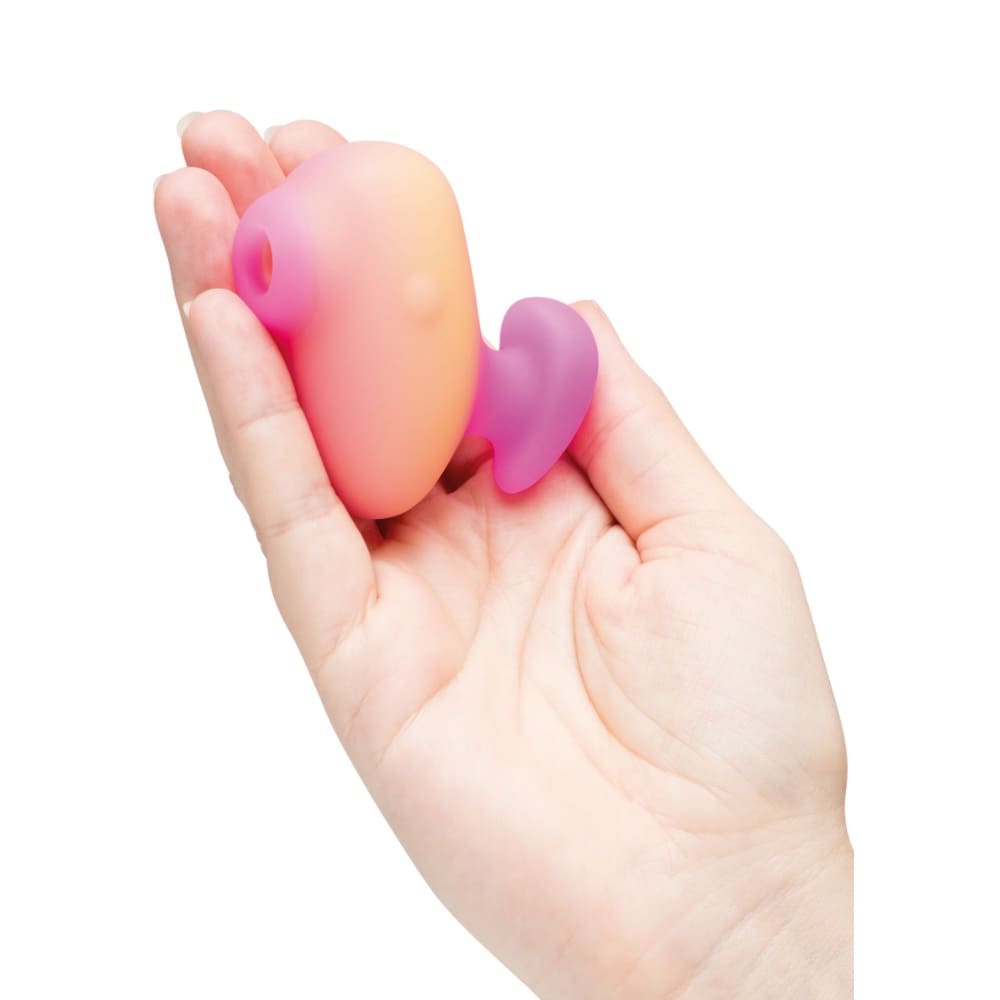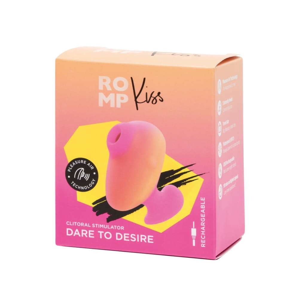 Въздушният клитор стимулатор The ROMP Kiss е компактен вибриращ стимулатор за клитор, който използва въздушни вълни с иновативната технология Pleasure Air, за да ви достави взривяващи оргазми! Ергономичният му дизайн ще пасне идеално във всяка ръка, без да се налага да чудите как да го задържите на точното място. Създаден от кадифено гладък силикон и забавен външен вид, Kiss притежава три различни режима на въздушно налягане, за да можете перфектно да персонализирате изживяването си. Той е едновременно удобен и издръжлив, и напълно водоустойчив, което го прави идеален за всяко приключение! Малкият му размер го прави вашият най-добър спътник!