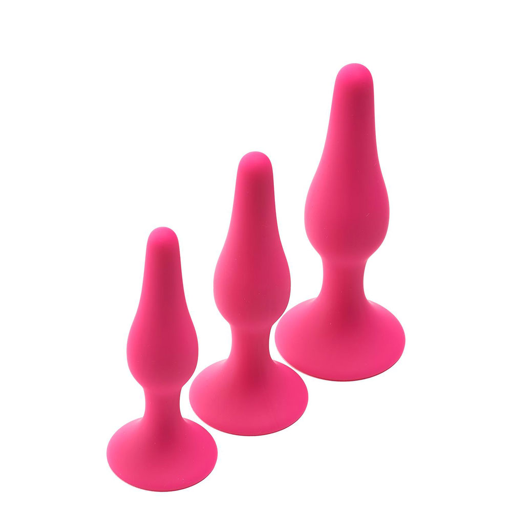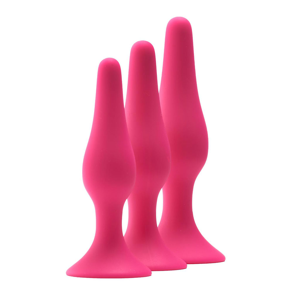 Flirts is the Dream Toys collection that has bright colours and packaging that reminds of spring, blue skies, sunny days and flowers. This Flirts kit features 3 anal plugs in 3 sizes. Each plug is made of pink silicone that is soft to the touch. A set with different sizes is perfect for users who wish to vary the sizes of the plugs and for those who want to train from small to large while enjoying anal pleasure. The plugs have a suction cup for hands free use.